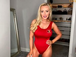 Une blonde à gros seins va enlever son maillot de bain et nous montrer son corps tonique