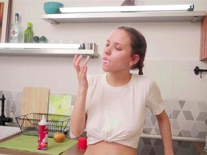 MY18TEENS - Angel avec de gros melons éclabousse son corps de crème et se masturbe