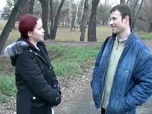 Étudiante rousse suce sur les rives de la rivière pour que tout le monde puisse voir